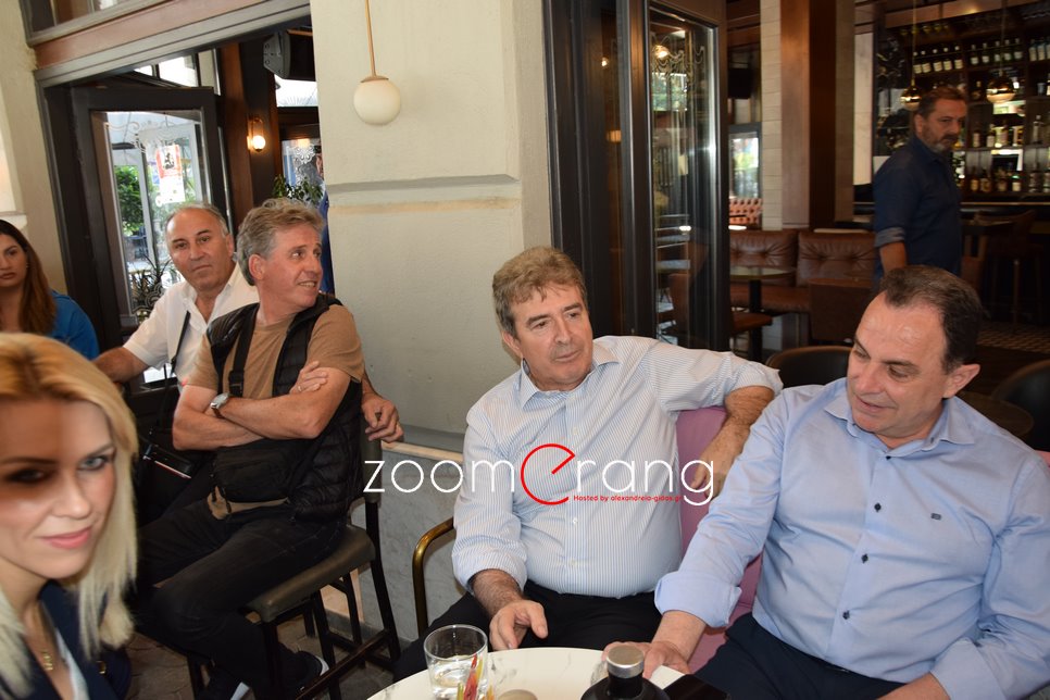 Πρώτος σταθμός ήταν η Αλεξάνδρεια όπου η συνάντηση έγινε στο COEN στον πεζόδρομο και στη συνέχεια το κλιμάκιο επισκέφτηκε το περίπτερο της Ν.Δ. στο Πνευματικό Κέντρο Αλεξάνδρειας.